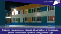 19 февраля 2021В рамках национального проекта «Демография» в Елизовском районе Камчатского края завершается строительство детского сада -